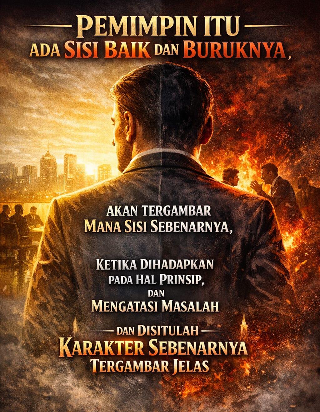 Kutipan “pemimpin itu ada sisi baik dan buruknya” mengingatkan kita bahwa kepemimpinan bukanlah tentang kesempurnaan. Setiap pemimpin adalah manusia, dengan kelebihan dan kelemahan. Tetapi yang membedakan bukanlah ada atau tidaknya sisi buruk melainkan bagaimana ia bersikap ketika sisi itu diuji oleh keadaan.